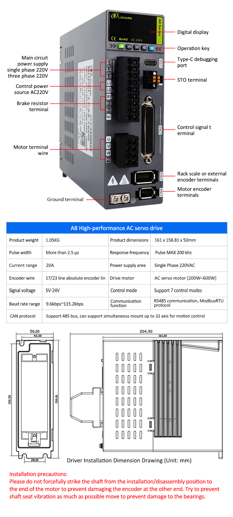 Novos produtos Pulso / RS485 200W / 400W / 600W 2500 / 3000RPM Codificador incremental / absoluto de 17/23 bits A8 Kit de drivers de servo motor CA STO ABZ de alta precisão fabricado na China com CE / ROHS da LICHUAN®. Nossa fábrica é um famoso Pulse/RS485 200W/400W/600W 2500/3000RPM A8 de alta precisão STO ABZ AC Servo Motor Drivers Kit fabricantes e fornecedores na China. Nosso produto é de alta qualidade/durável/operação estável e preço barato. E oferecemos serviços personalizados.