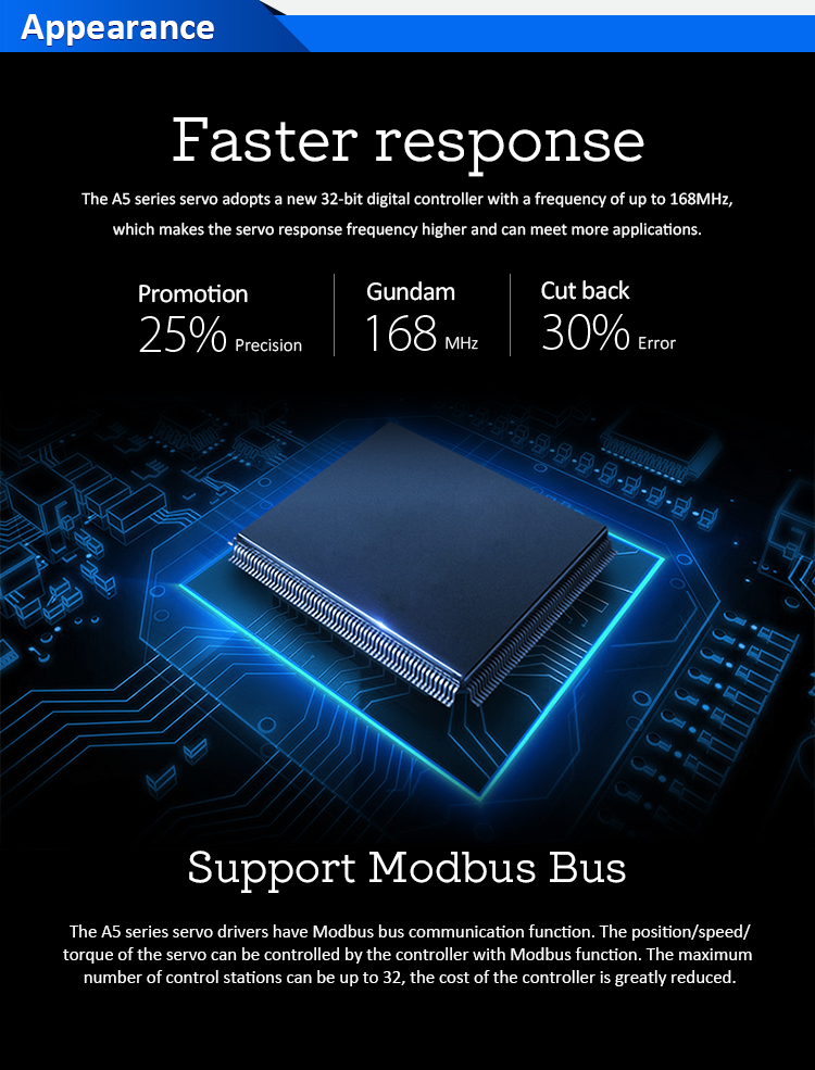 2. Suporta 7 modos de controle: posição, velocidade, torque, posição/torque, posição/velocidade, velocidade/torque, posição/velocidade/torque