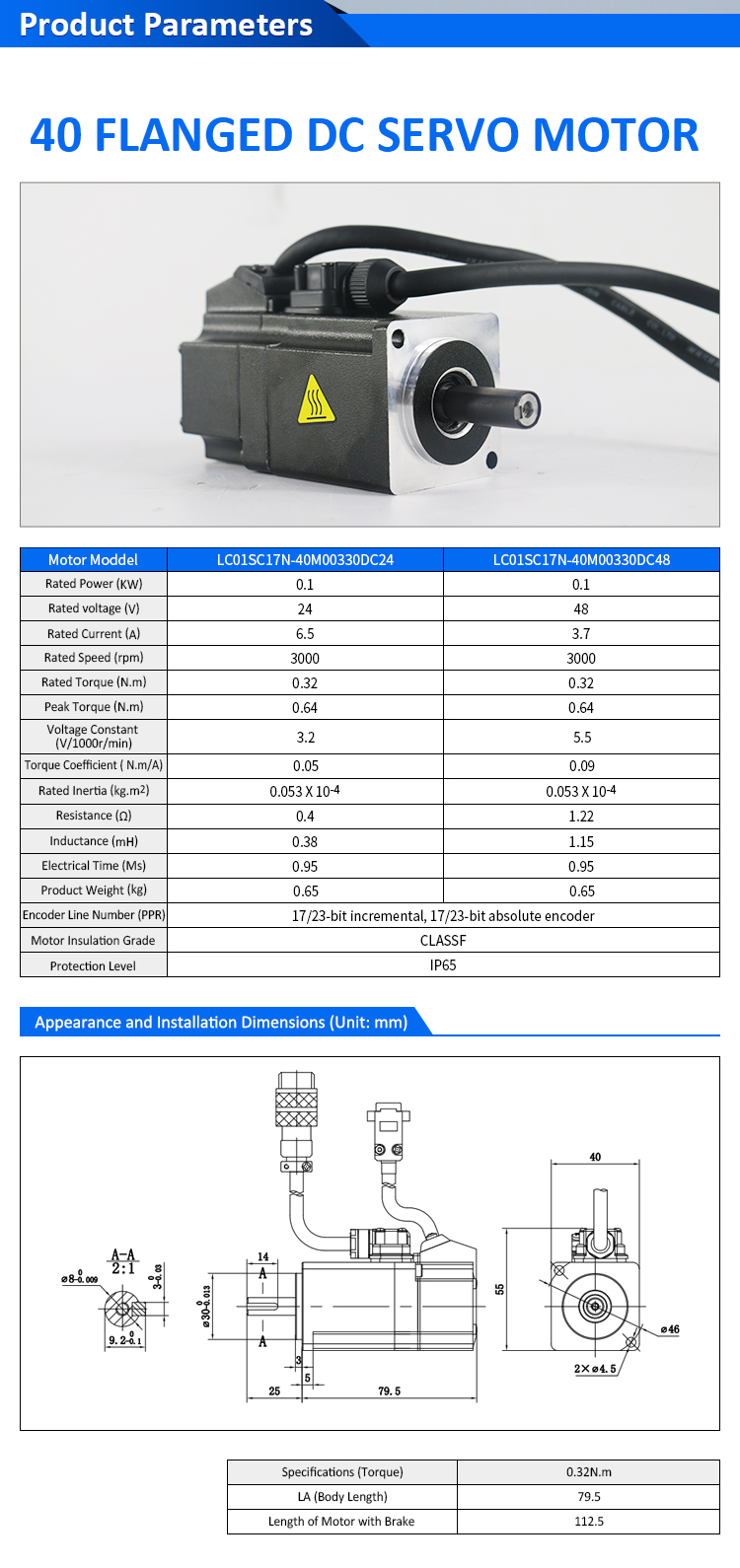 Pulse/RS485/CANopen/EtherCAT 80 FLANGED 750W Kit de drivers de servo motor DC de baixa tensão